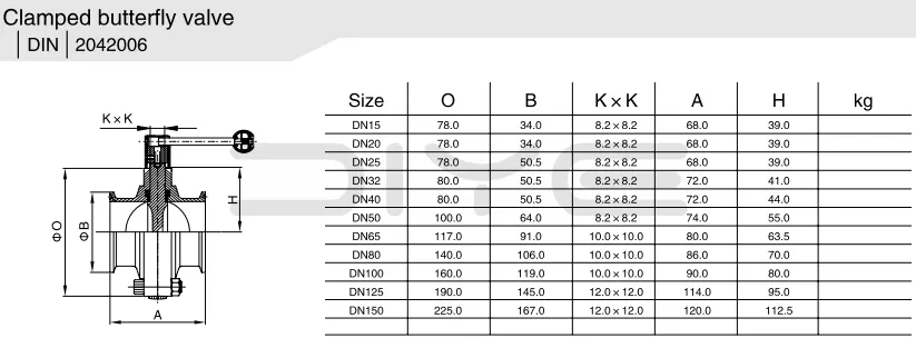 Metulj s sanitarno objemko DIYE VALVE, izvožen iz Kitajske, je posebej zasnovan za higienske delovne pogoje s strogimi zahtevami glede čistoče cevovoda, brez mrtvih vogalov in enostavnega čiščenja. Široko se uporablja v živilski, farmacevtski industriji, industriji pijač in biofarmacevtski industriji, uporablja pa se predvsem za vklopno-izklopno krmiljenje medijev v cevovodih.